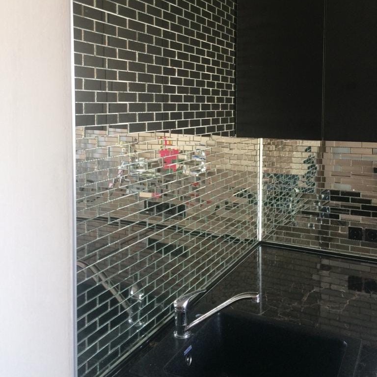 Использована зеркальная квадратная и треугольная плитка с фацетом.
